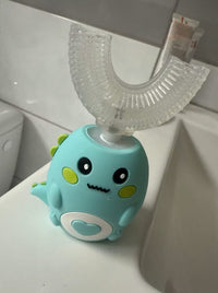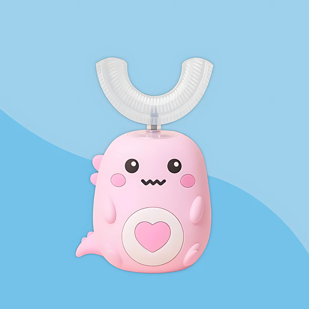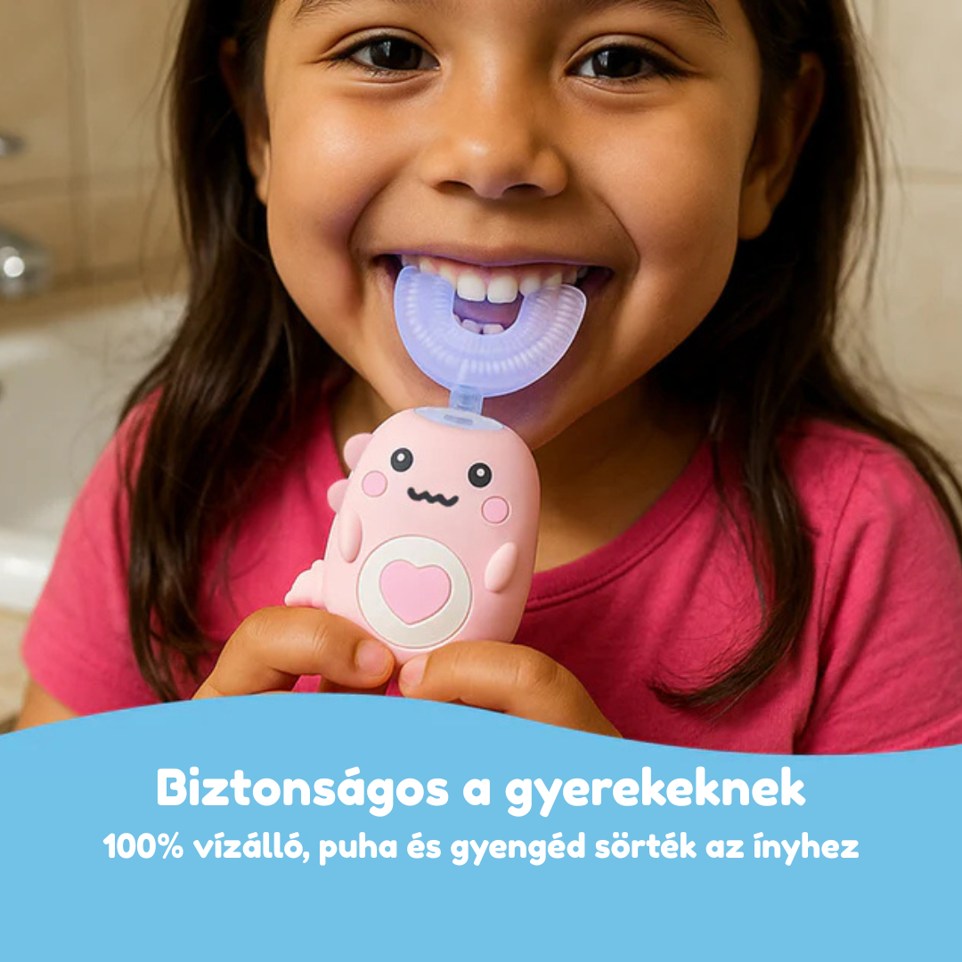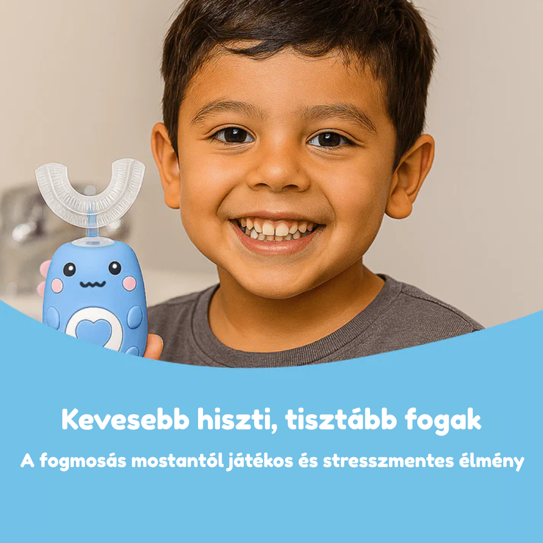 A DentyDino U-alakú szilikon feje egyszerre öleli körbe az összes fogat, így minden oldalról alaposan tisztít. A puha, gyengéd sörték úgy lettek kialakítva, hogy még az érzékeny ínyt is kíméljék. A 360°-os technológia biztosítja, hogy a gyerekek akkor is jó munkát végezzenek, ha még nem tudnak precízen fogat mosni. Ez különösen hasznos a kisebbek esetében, akik hajlamosak kihagyni területeket.